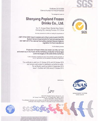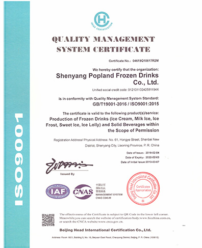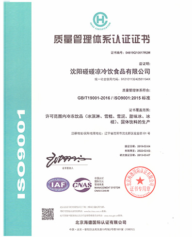 公司有完善的質量管理體系和質量控制流程,全面推行ISO9001、HACCP、ISO22000管理體系,策劃、實施、運行、持續改進,并通過了三體系認證。公司配備行業先進的生產設備和檢驗設備,從原料入廠驗收、到生產過程質量控制以及產品出廠檢驗的層層把關,保證了產品的質量安全,切實踐行了碰碰涼人的使命——以優質的冰淇淋滿足消費者舌尖味蕾的需求,給他們帶來快樂和享受。